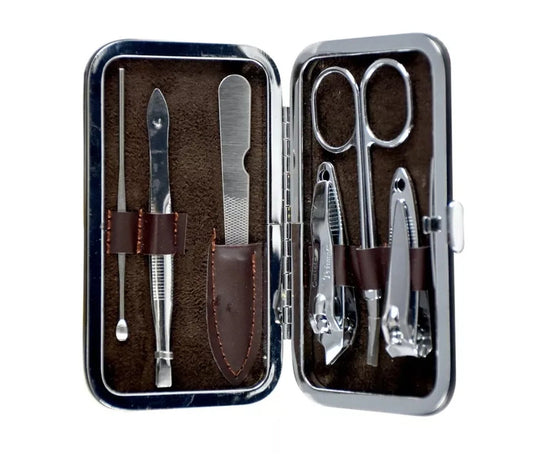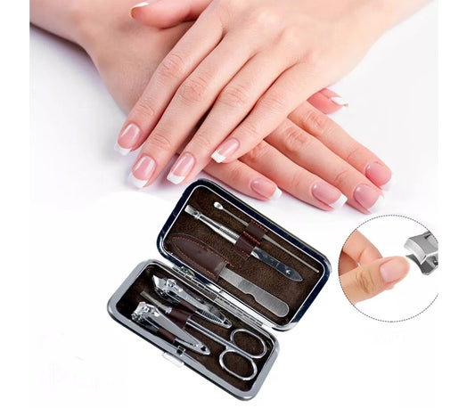 6pcs Manicure Set - Stainless Steel Nail Clipper & Pedicure Kit with Brown Case
