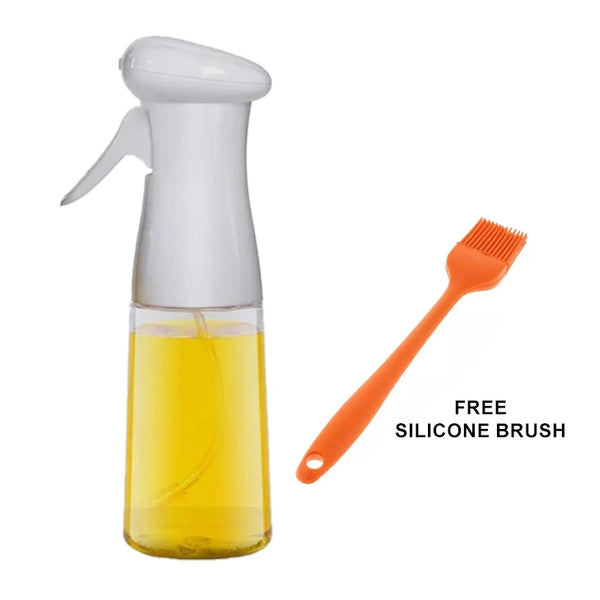 Refillable Oil Spray Mist Bottle With Silicone Oil Brush-White (210 ml, Ideal for BBQ, Baking, Grilling, Roasting & Fryer)