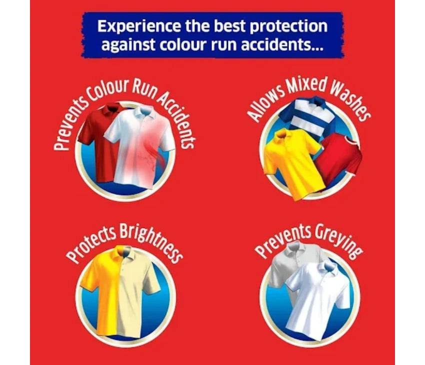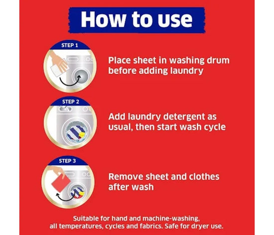 Dylon Colour Catcher Max Protect Sheets help prevent colour run accidents. These innovative sheets prevent colour bleeding in the wash, so you can safely wash all colours together. This enables less sorting, leads to fewer wash loads and helps saving water and energy