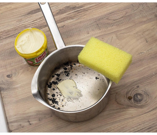 For heavy grease and burnt-on residue, we recommend Elbow Grease paste or a kitchen degreaser spray from our antibacterial cleaner range.