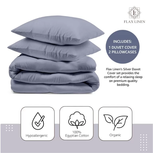 Experience total comfort with our Egyptian cotton duvet covers from Flax Linen. Made with a lush 400 thread count, this set feels incredibly soft and cosy. Made from high-quality 100% Egyptian cotton, this cotton duvet cover is as gentle on the planet as it is on your skin. The perfect-fit sheet stays snug all night, giving your bed a smooth, tailored look. It is more than just cotton bedding, it is a daily luxury that helps you wake up feeling refreshed and ready to take on the day.
