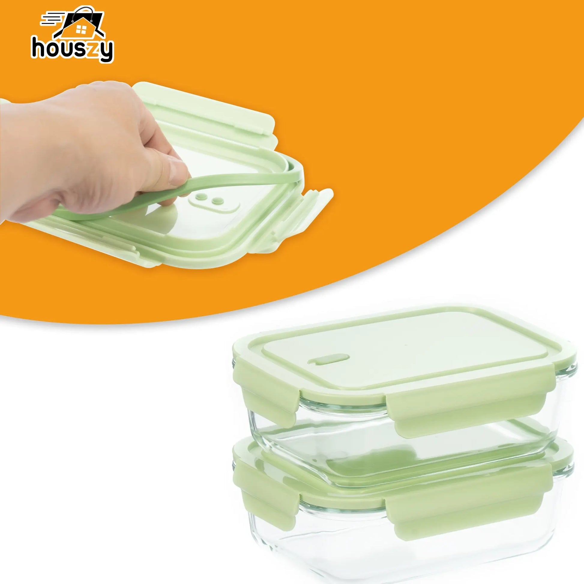 Houszy Glass Food Containers with Air-Vent Lids – 5 Pack – Mint-Green