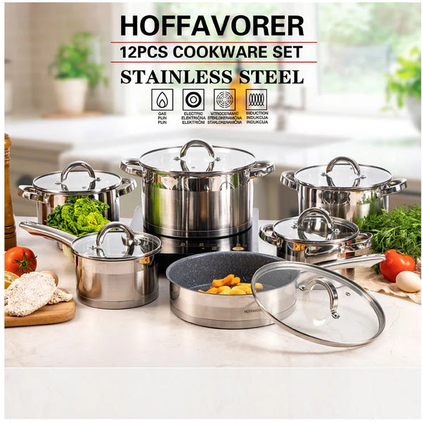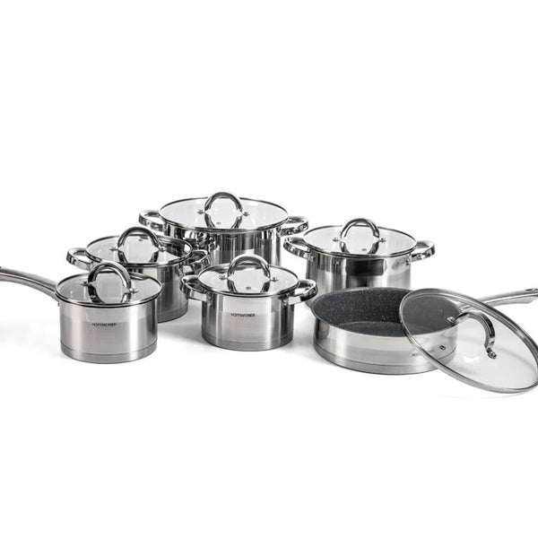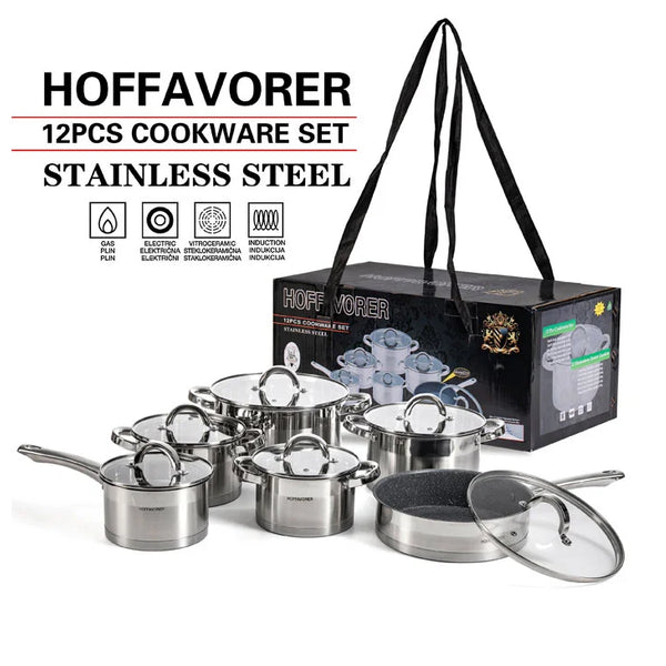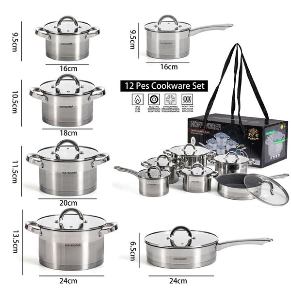• High-Quality Stainless Steel-Durable 12-piece cookware set made from premium stainless steel. (ideal for cooking pasta, rice, vegetables, sauces, casseroles, and curries)