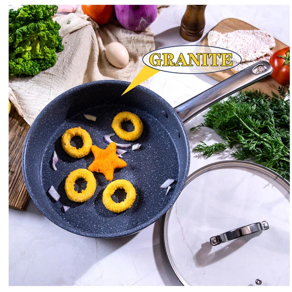 • The Set Includes -Casserole pots (16x9.5cm, 18x10.5cm, 20x11.5cm, 24x13.5cm), 1 saucepan (16x9.5cm), 1 Deep frying pan (24x6.5cm), and 6 tempered glass lids.